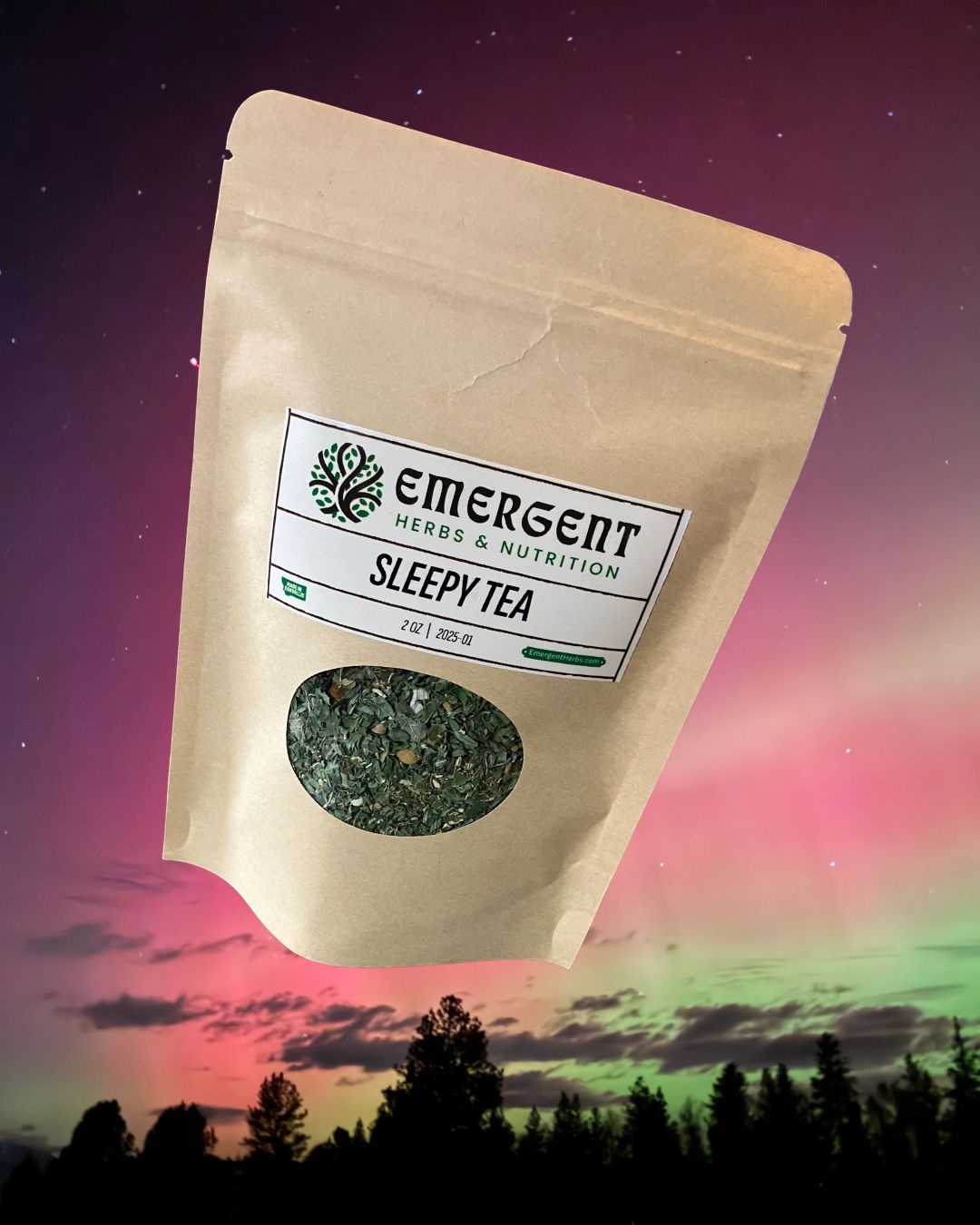 Althea officinales (marshmallow root), Matricaria recutita (chamomile), Scutellaria lateriflora (skullcap), Melissa officinales (lemon balm), Glycyrrhiza glabra (licorice root).
